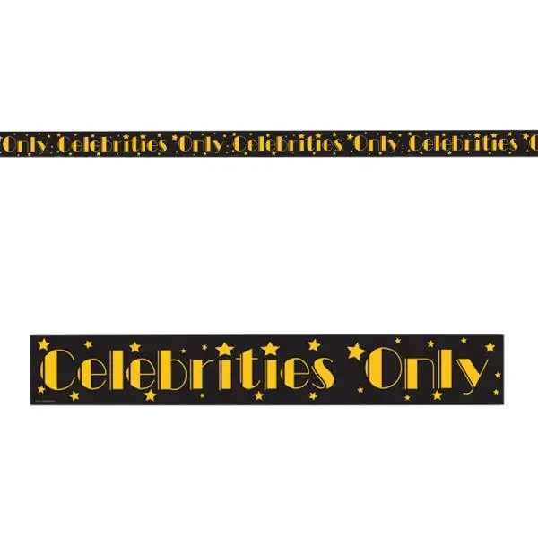 This, inchesCelebrities Only inches party tape will be a gre your VIP parties, awards events and show watching gatherings. Black tape with stars and the words, inchesCeleb Only inches in yellow/gold. Tape measures 3 inches x 20′ and from all-weather poly material.