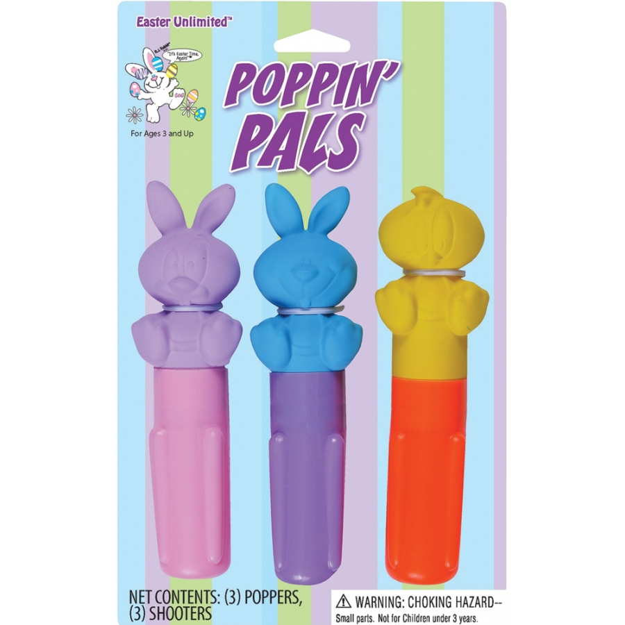 EASTER POPPING PALS TOY. Create extra fun when you include the Egg Blaster Toys into your children’s Easter baskets! Comes with 3 wands and 3 Popping Pals on each card. Made of safe plastic. Squeeze the wand and the Pal goes flying! Hours of fun!