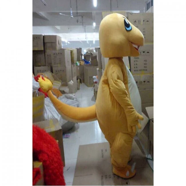 Giant Pokemon Charmander Mascot Costume. Charmander is a small, bipedal and looks very much like a dinosaur Pokemon. Its body is orange and the underbellay spots pale light yellow color. Charmander has a end tail that always burn. Once the tail stops burning or goes out, his life comes to an end. Charmander is a sweet mild mannered and very behaved Pokemon. Here we have Charmander as himself, with the necessary yellow white and a little red at the end of the tail. Have fun in any occasion with this adorable character.