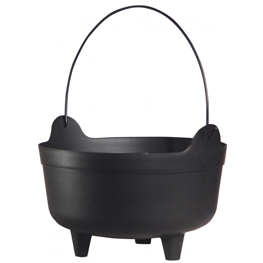 KETTLE DUTCH. This injection-molded black plastic Kettle with handle is perfect for decorating a haunted house, bobbing for apples, or trick or treating. 100% Polypropylene. Measures 13.5in x 13.5in x 10in