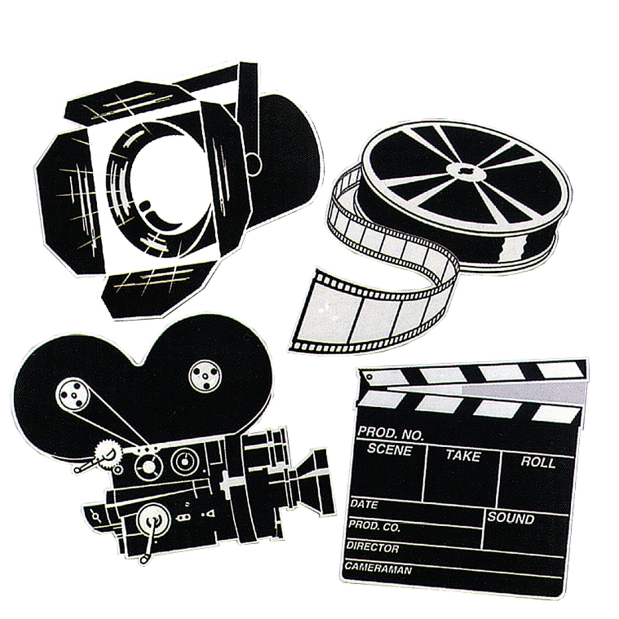 MOVIE SET CUTOUTS. Four 16 in designs per package. Printed on both sides.