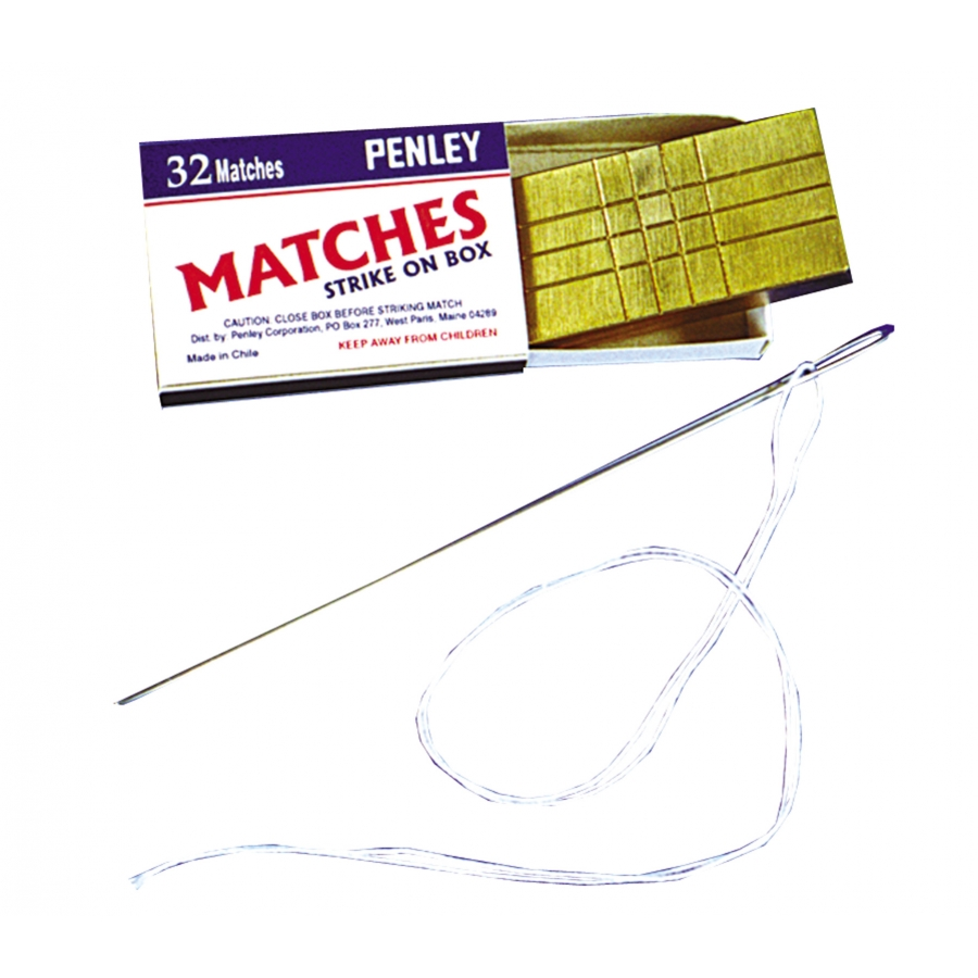 PIN THRU METAL. You open a match box, and show a solid brass bar. Close the box and pass the needle thru the box and bar. The bar is removed, and passed out to be examined. Very well made, and of professional quality.