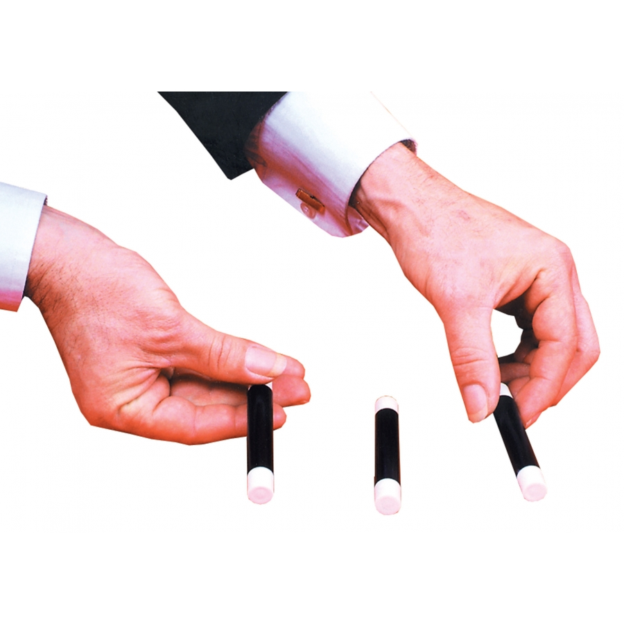 RATTLE BARS. Three small wands are shown, one of which contains a rattle. The spectator is requested to keep his eye on the rattling wand as they are shuffled around. But the spectator is unable to find the rattling wand again, as the magician is in complete control. Baffling trick!