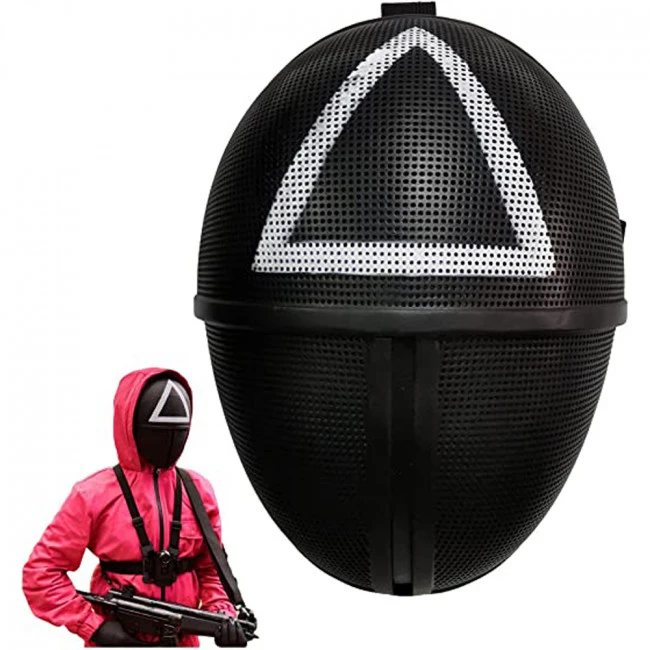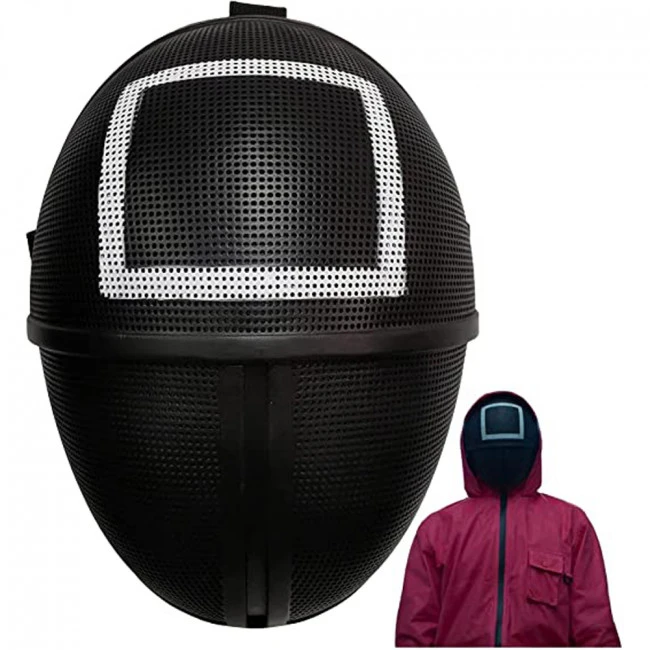 Squid Game Worker Mask Costume. The high-quality Squid Game mask, exquisite craftsmanship, delicate design, and great workman craft, clear and beautiful color, fits most adults.