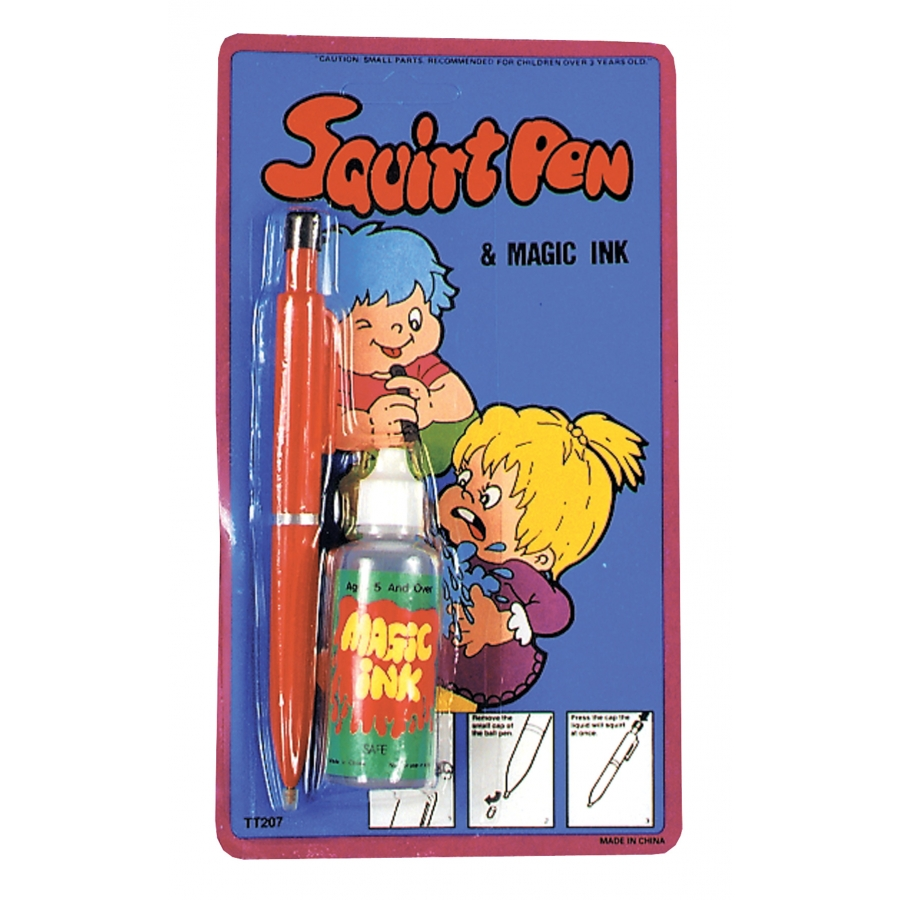 SQUIRT PEN WITH DISAPPRNG INK. Fun gag, easy to useadd liquid such as magic ink or water, remove the small cap of the ball pen, press cap and squirt.