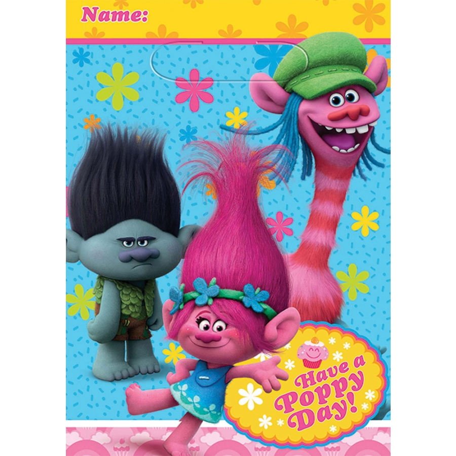 TROLLS FOLDED LOOT BAGS 8 PACK. Perfect for Trolls fans and a fantastic accessory for any celebration. These favor bags are great for handing out sweets and treats to your party guests. Plastic, 9″ x 6.5″ in size. 8 per package.